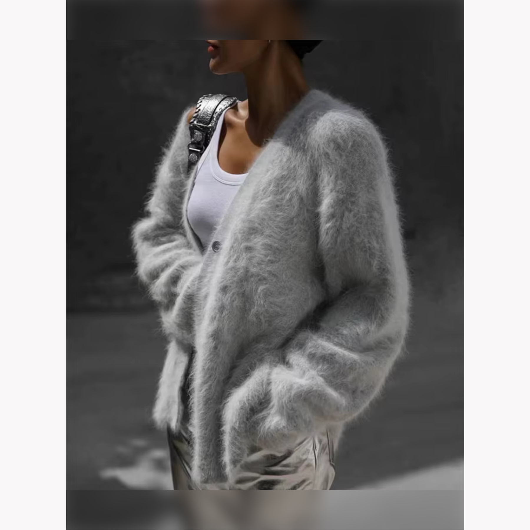 Maya-cardiganen kombinerer avslappet eleganse med en herlig, myk tekstur som føles som en klem mot huden. Den luftige, pelsaktige overflaten og den løse passformen gjør den ideell for både rolige hjemmedager og sosiale sammenkomster. Med sin dempede farge og tidløse design er dette en cardigan du alltid kan stole på.