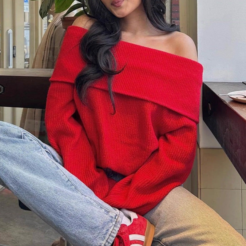 Paket beinhaltet: 1* Damen Off-Shoulder Relaxed Langarm Pullover